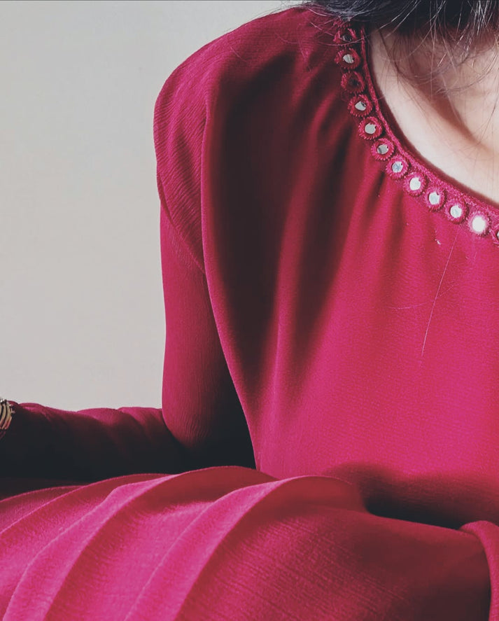 Experience timeless elegance with Zhilaksha's stunning maroon saree, featuring a chiffon blouse with intricate lace work and a flowing chiffon pallu that drapes gracefully with every step. Paired with a luxurious silk petticoat and inner lining, this saree ensures a perfect drape and sophisticated look. Ideal for festive occasions, weddings, and parties, this saree will make you stand out with its elegance and charm. The chiffon fabric provides a lightweight and comfortable feel, while the silk petticoat adds a touch of luxury. Whether you're attending a formal event or a special celebration, this saree is sure to turn heads and leave a lasting impression.