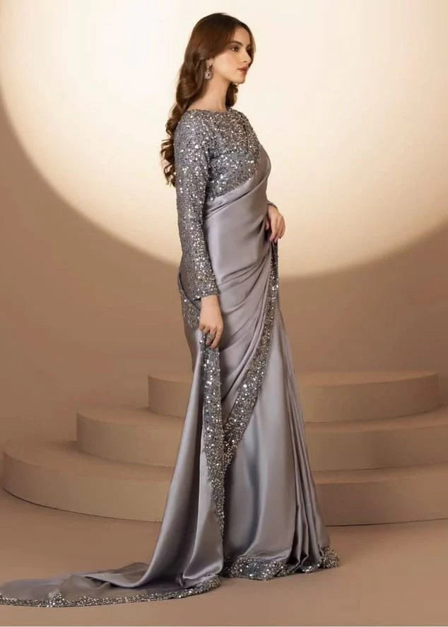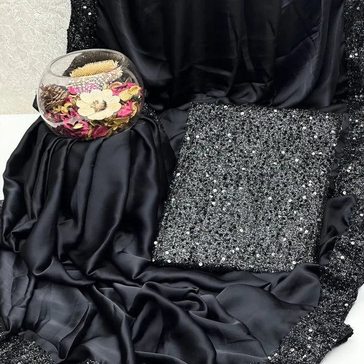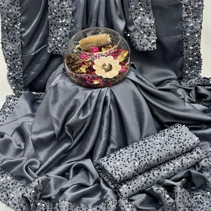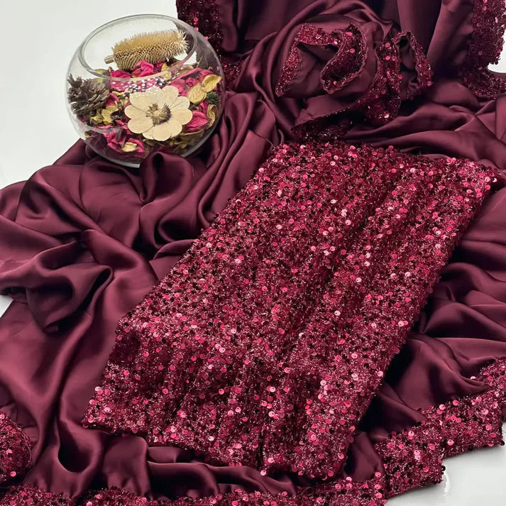 Silk Saree With Sequence Work✨